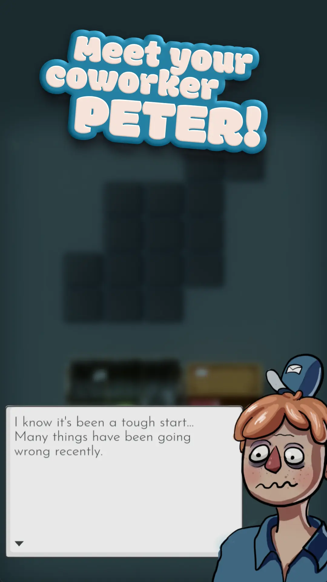 You work in the warehouse alongside your stressed and overworked co-worker, Peter. Together, you tackle the endless stream of packages, solving day-to-day complications in the workplace while massive events unfold outside. Political upheaval, economic shifts, and a charismatic new leader changing the world — but within the warehouse, the grind never stops.